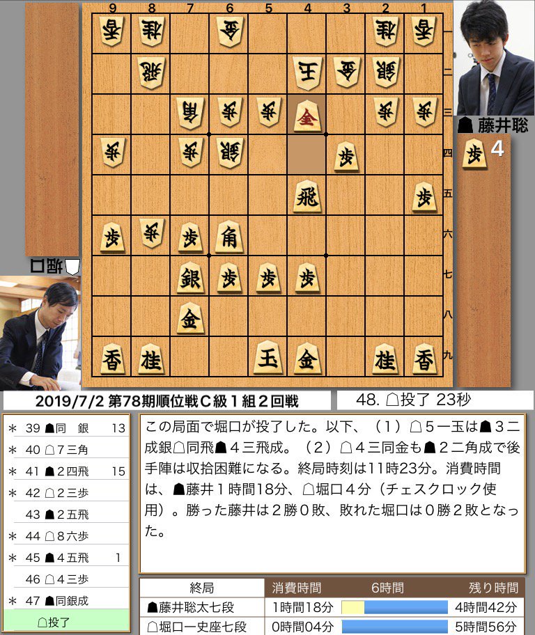 藤井聡太七段vs堀口一史座七段 第78期c1順位戦 2019 7 2 速報 結果将棋藤井聡太結果今日
