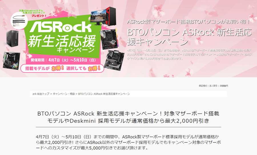アーク Asrock製マザーボード採用bto Pcや省スペースpcなどが対象 Asrock 新生活応援キャンペーン を開催 Ark Tech And Market News Vol 3003122