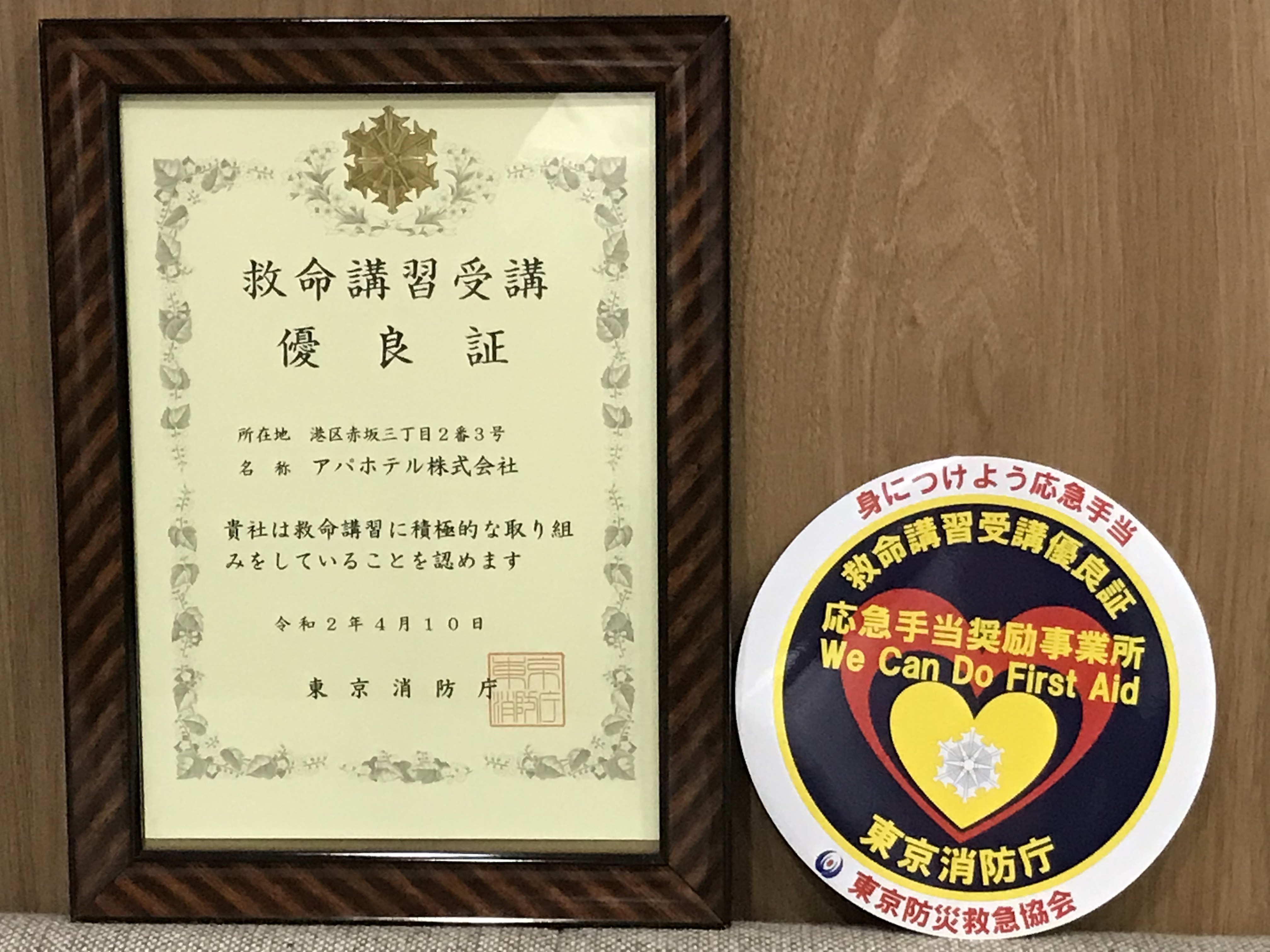 4月10日 金 チェーンホテル初 救命講習受講優良証取得 公式 アパ ホテル ビジネス予約サイト