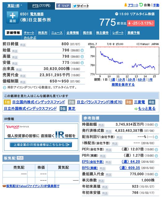 株 日立製作所 6501 株式 株価 Yahoo ファイナンス