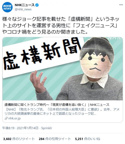 Nhkニュースが虚構新聞にインタビュー フェイクニュース やコロナ禍をどう見るのか聞きました ニコニコニュース