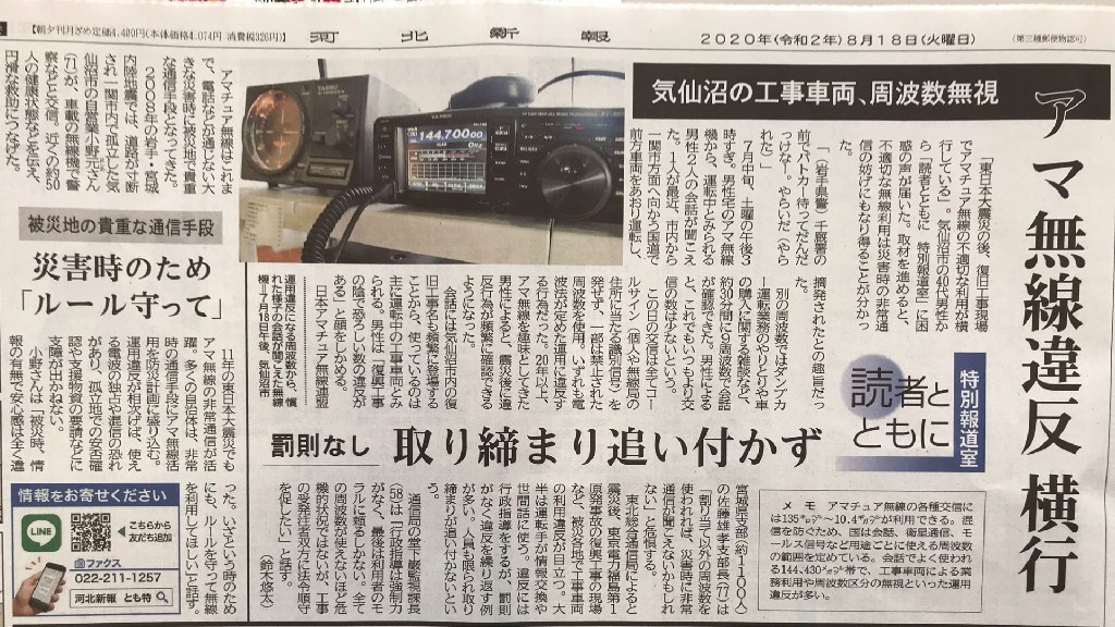 Uzivatel 違法無線局情報 札幌エリア 無報酬 Na Twitteru 完全版 拡散希望 総務省が全国で放置の アマチュアの業務利用が遂に新聞報道 河北新報そして これを報道までこぎつけた 某アマチュア無線局さんへリスペクトを そして報道はまだ続くよ 総務省