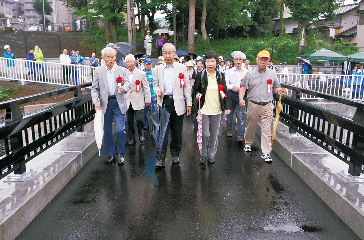和泉川に くつろぎ橋 住民 渡り初めで完成祝う 瀬谷区 タウンニュース