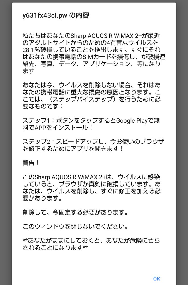 アンドロイドの画面に突如現れた Y631fx43cl Pwウイルスの削除 はなんでしょ Yahoo 知恵袋