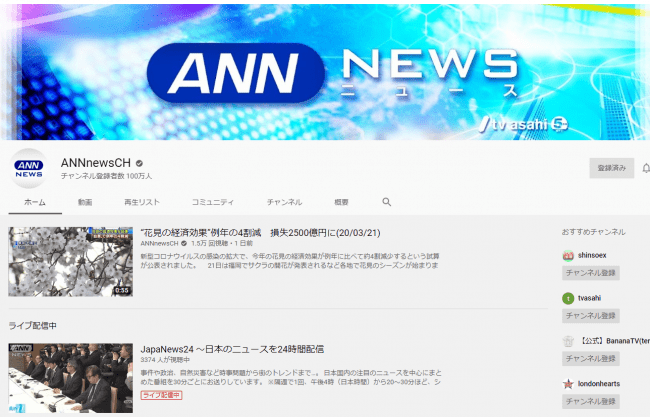 Youtube Annニュースch 登録者100万人達成 20 03 23 Youtube