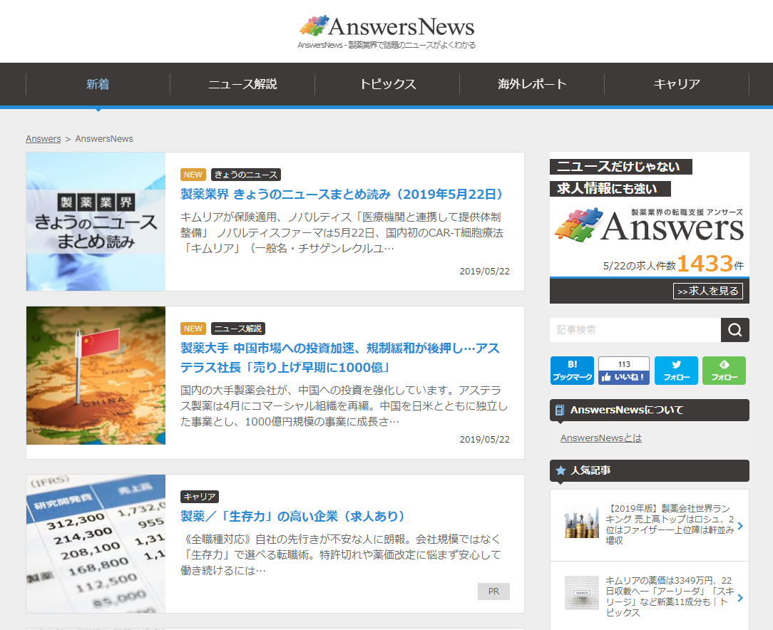 Answersnews 製薬業界のニュース解説メディア