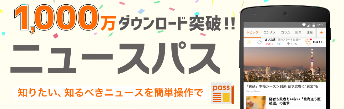 ニュース配信アプリ ニュースパス のダウンロード数が 1 000万を突破 株式会社gunosy グノシー 情報を世界中の人に最適に届ける