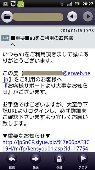 Auから大事なお知らせとurlをクリックしてログインしてくださいとメ Yahoo 知恵袋
