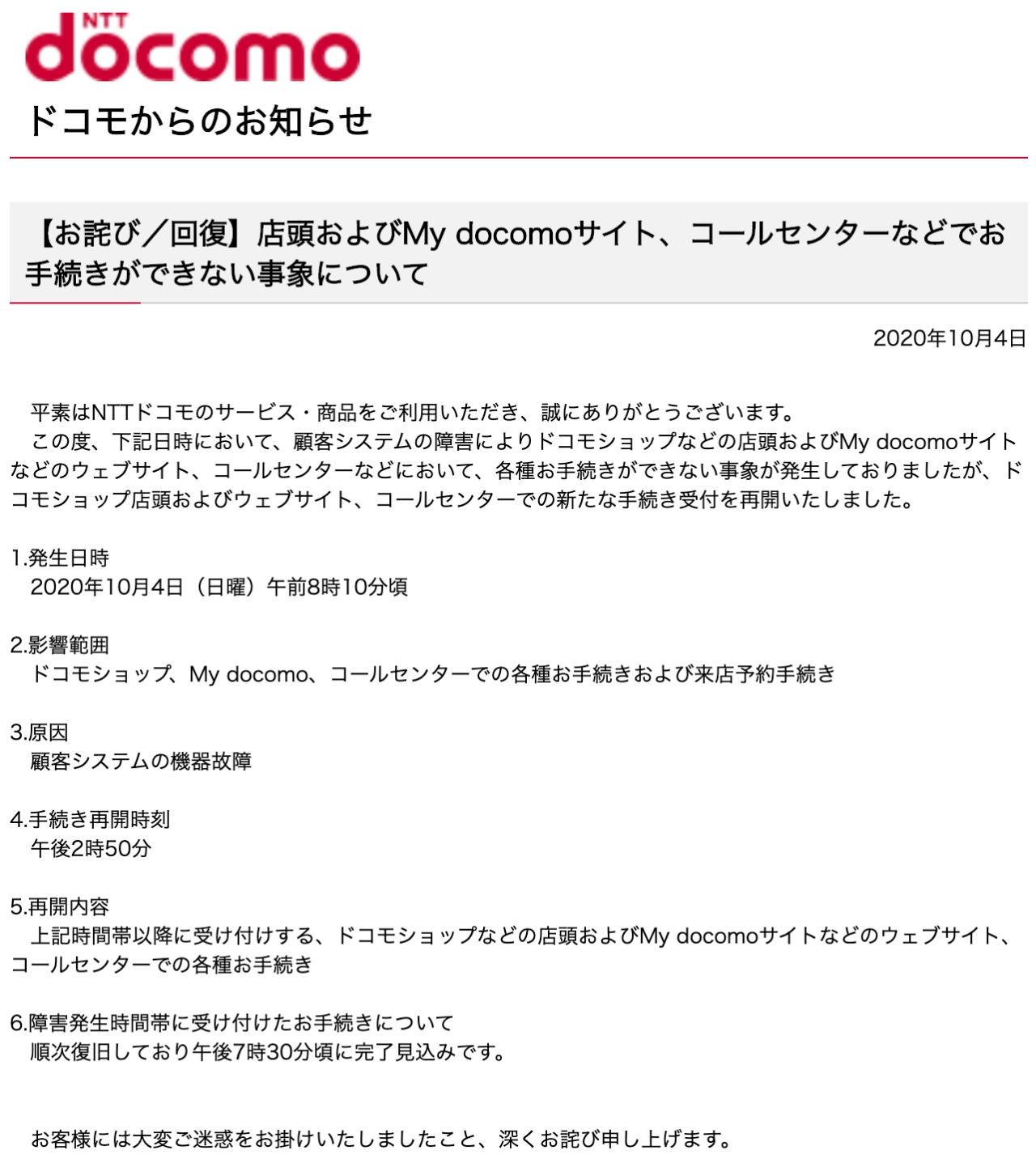 ドコモ顧客システム障害 店頭やmy Docomoなどで手続き不可能に 復旧 Engadget 日本版