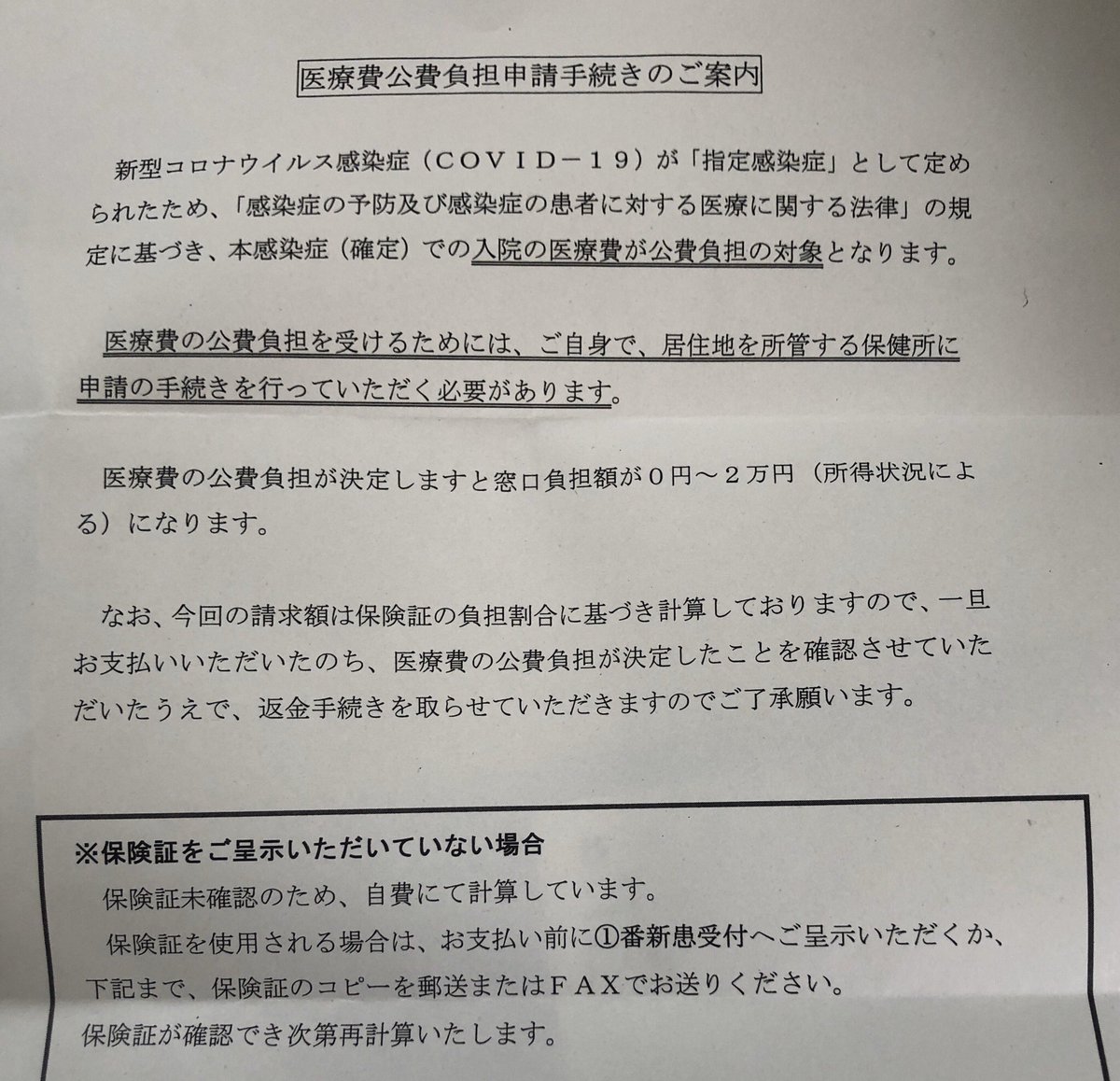 新型コロナ に感染した人に来た入院費 9日間 検査込 の請求額の現状 入院時の状況含め大変らしい アドバイスいろいろ集まる Togetter