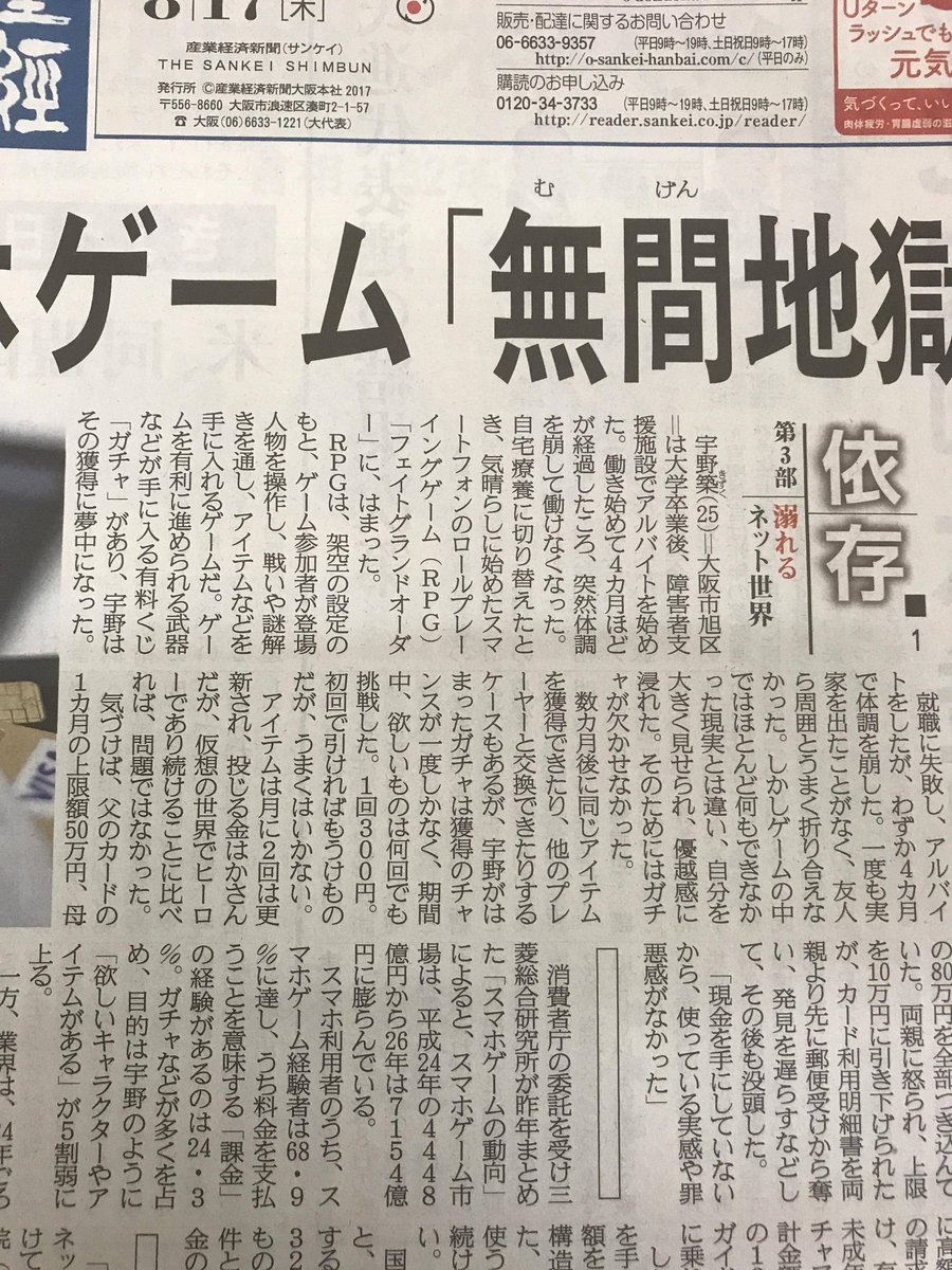 Fgoが産経新聞に 無間地獄 として一面に取り上げられる Togetter